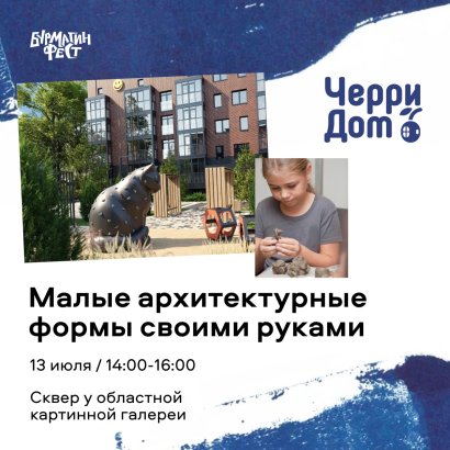 14:00-16:00 в шатре у картинной галереи вместе с нашим архитектором будем генерировать идеи и создавать малые архитектурные формы и крутые арт-объекты.