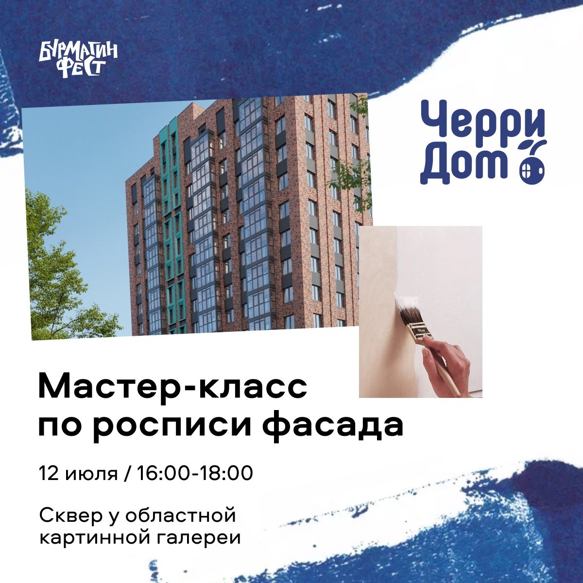 16:00-18:00 на нашей площадке у картинной галереи в месте с дизайнерами студии «Cherry Design» вы сможете приложить свою кисть к росписи фасада нового жилого комплекса «В-Сити».