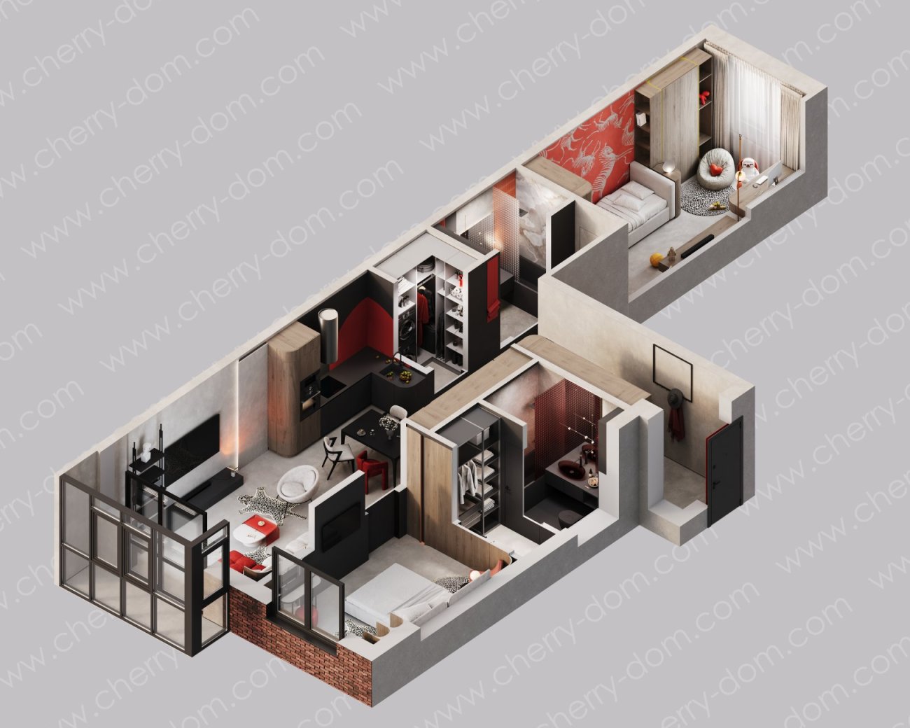 мастер спальня с собственным санузлом и гардеробной комнатой;