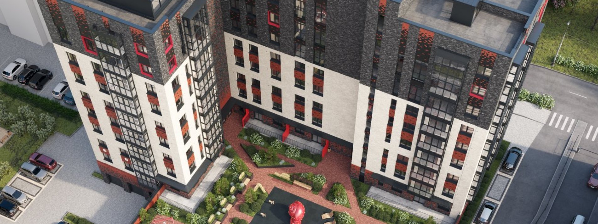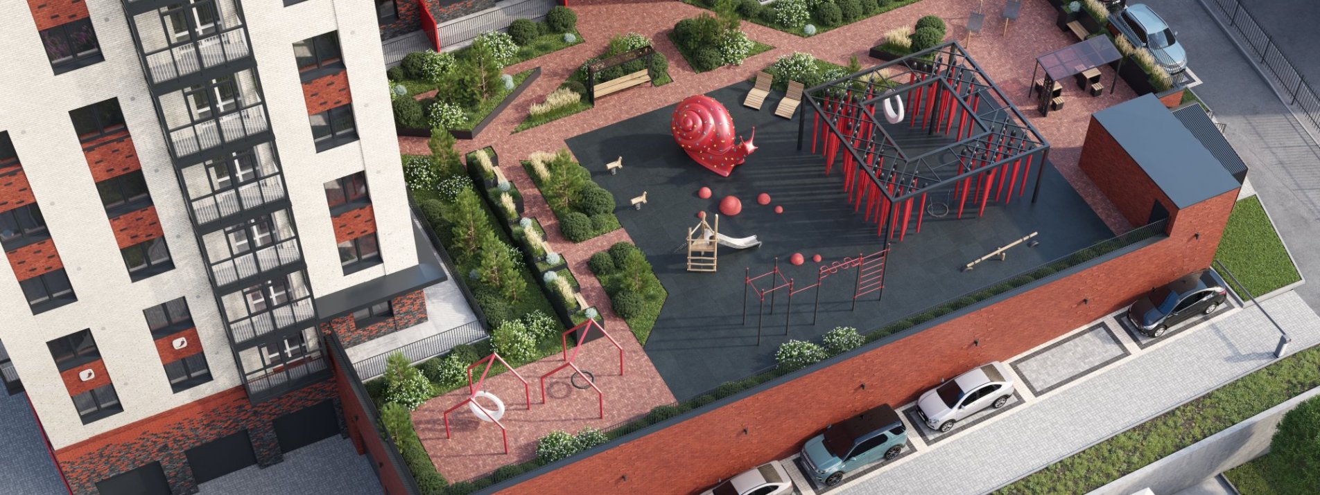 - Спроектирован открытый двор площадью 12 соток с озеленением, зоной для игр и отдыха на первом этаже жилого комплекса.